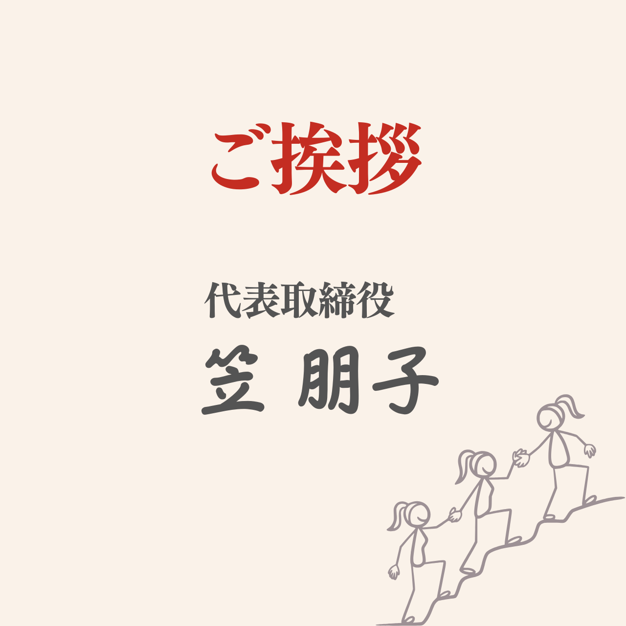 | 役員 | 代表取締役 笠 朋子(Tomoko Kasa) |